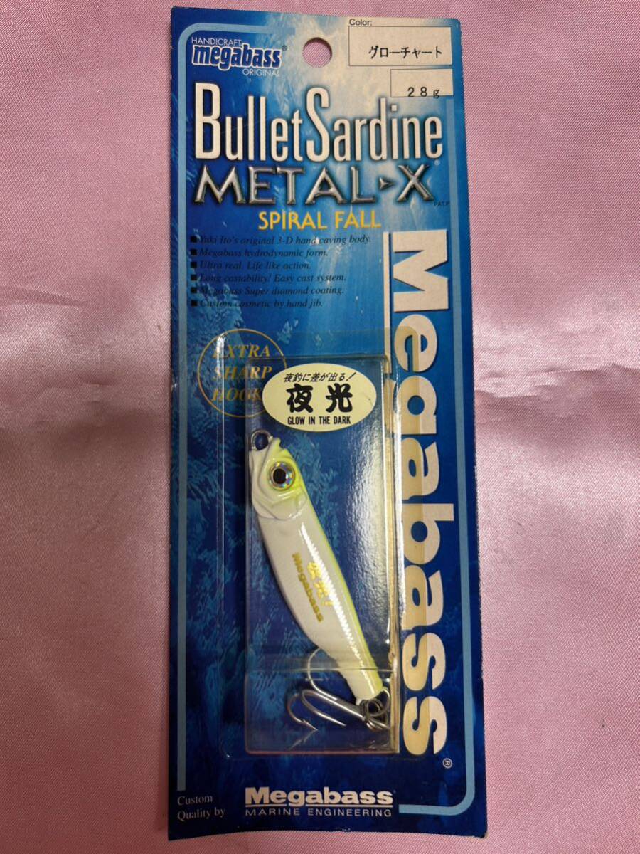 - 希少!MEGABASS メガバス メタルエックス スパイラルフォール バレットサーディン 28g グローチャート