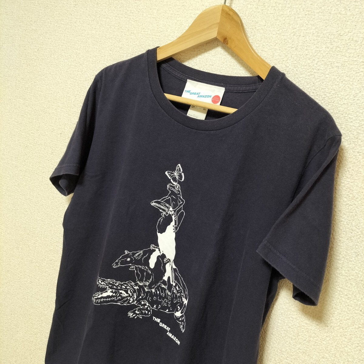 - ☆BEAMS ビームス 半袖 Tシャツ ラバープリント THE GREAT AMAZON ネイビー メンズ サイズL トップス カットソー ナイキ ブランド古着 USED