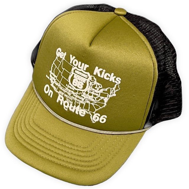 - Mega Cap メガキャップ トラッカーキャップ メッシュキャップ 発砲プリン Route 66 モス ブラック スナップバック [l-0966]