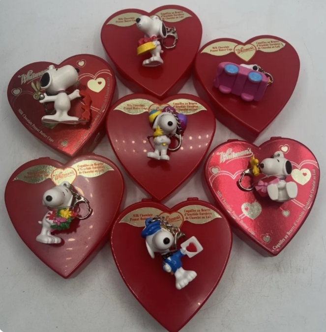 - ピーナッツ スヌーピー ホイットマン社 バレンタインチョコ ハート プラスチックケース 7個 セット
