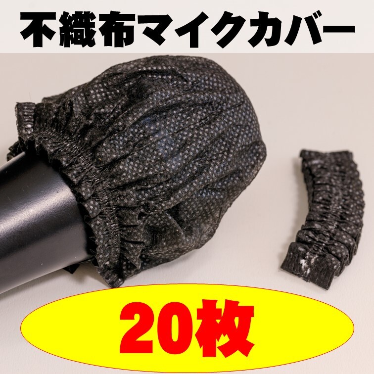 > 【激安】20枚 使い捨て不織布マイクカバー ブラック 不織布 包装 衛生的 使い捨て 抗菌 ウイルス対策 飛沫防止 【2枚入/10袋】