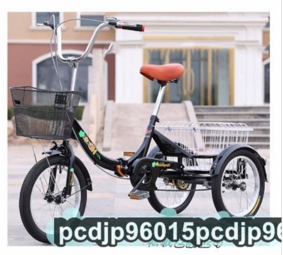- 人気推薦☆大人用三輪車 大型バスケット付き リクリエーシ 高齢者用ペダル自転車 16インチホイール バスケット付き折りたたみ式三輪車