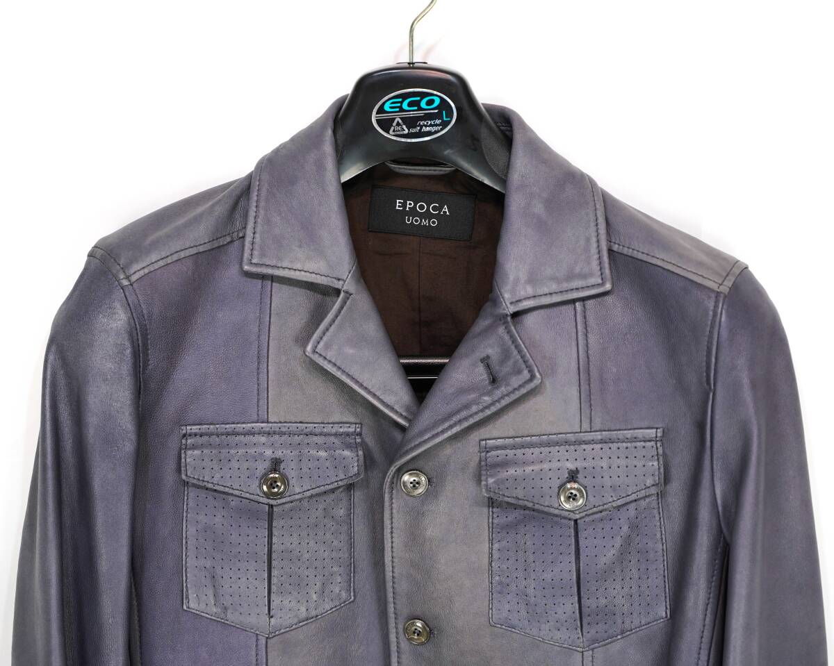 - 即決本物★エポカウォモ メンズ ラムレザー ジャケット 44 薄い紺 羊革 本切羽 エポカ