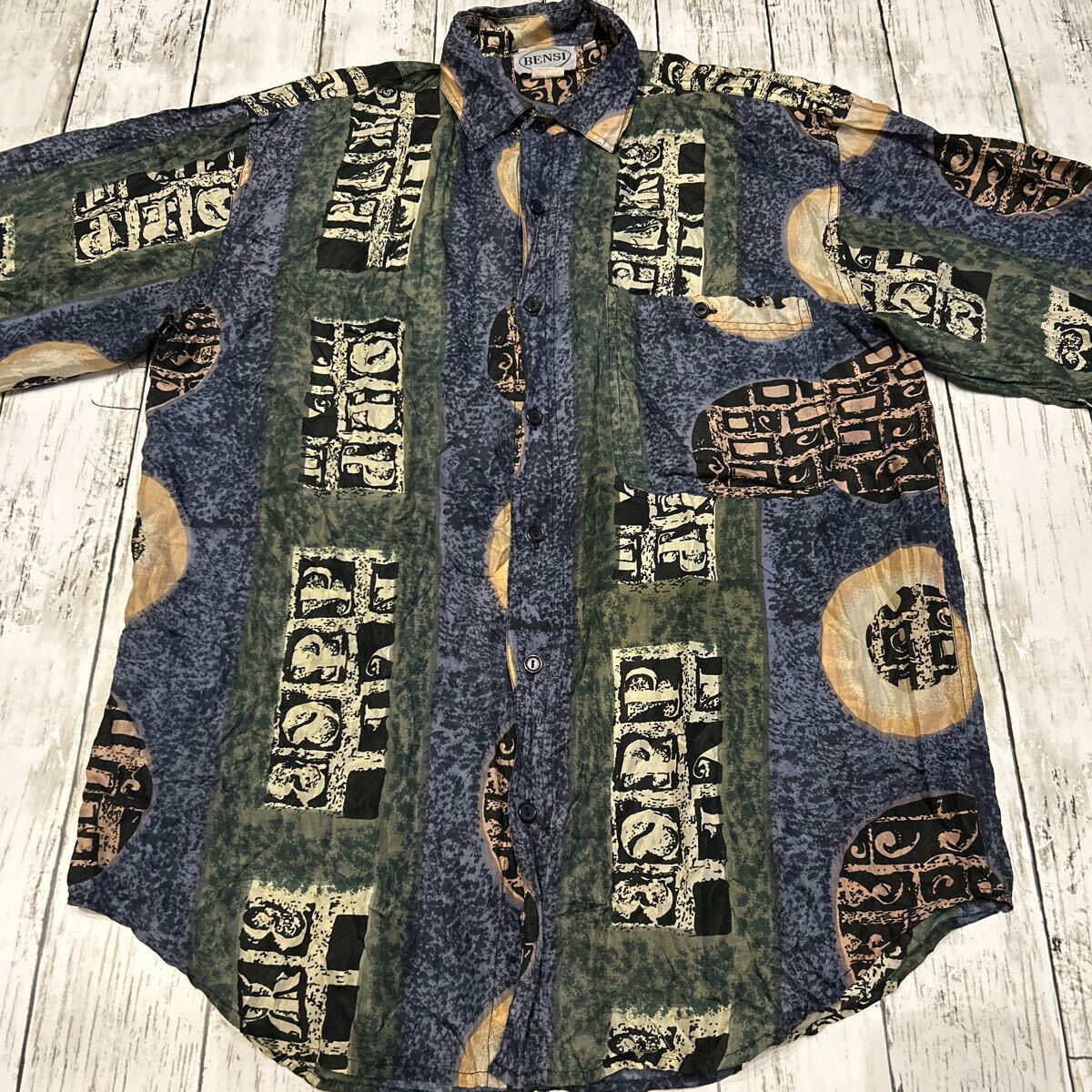 - BENSI シルクシャツ 総柄 柄シャツ レトロ アート ビンテージ 半袖シャツ SILK100%