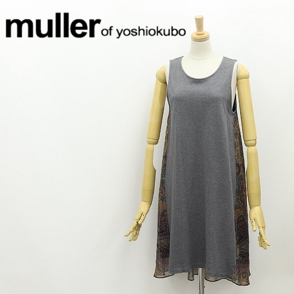 - ◆muller of yoshiokubo ミュラー オブ ヨシオクボ ペイズリー柄 異素材 切替 バックレースアップ ノースリーブ ワンピース グレー 38