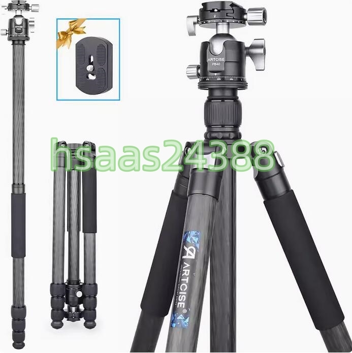 - ARTCISE AS85C+PB40 カメラ カーボン三脚 ナットロック式 四段 トラベル 一脚伸縮可変式 全伸高185cm パノラマ 40mmボール低重心雲台