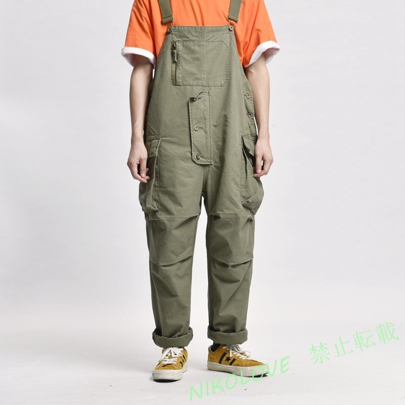 - 新品アメカジ オーバーオール サロペットパンツ ワイドパンツ カラーマッチング ワークウェア グリーン LD940