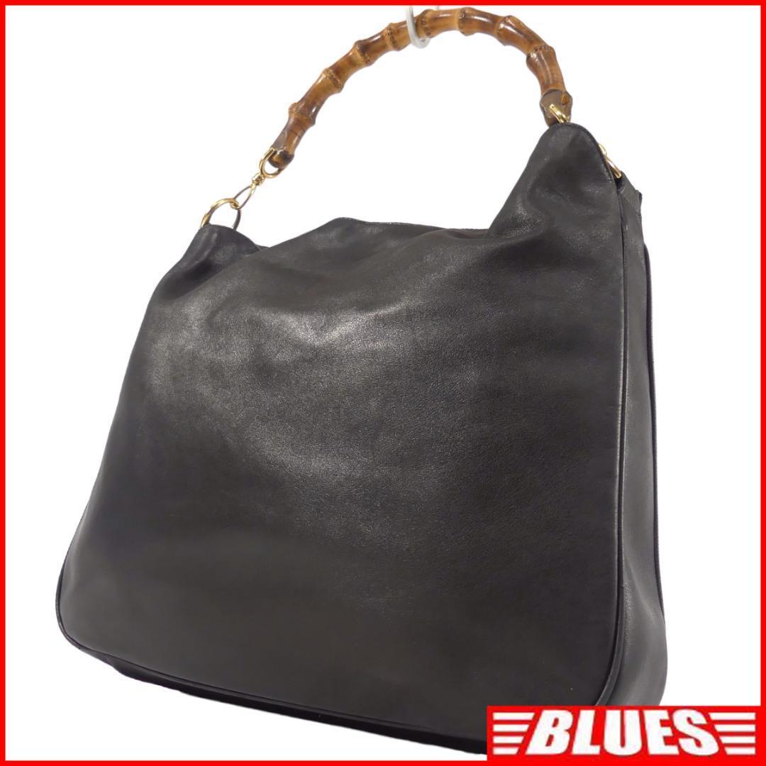 - 即決★イタリア製 GUCCI★オールレザーハンドバッグ グッチ 黒 バンブー 本革 手提げバッグ 本皮 旅行 カバン 鞄