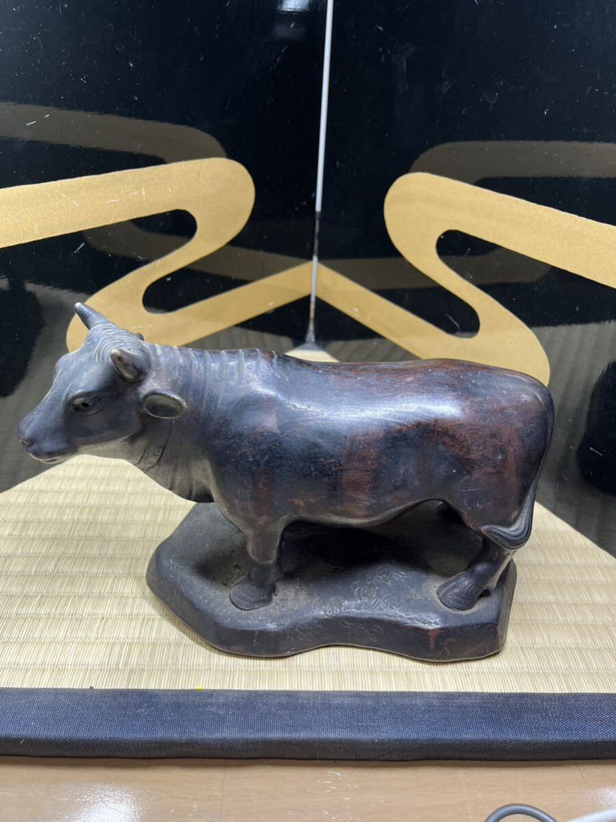 - 明治手 備前 細工物 牛 置物 縁起物 塗り土