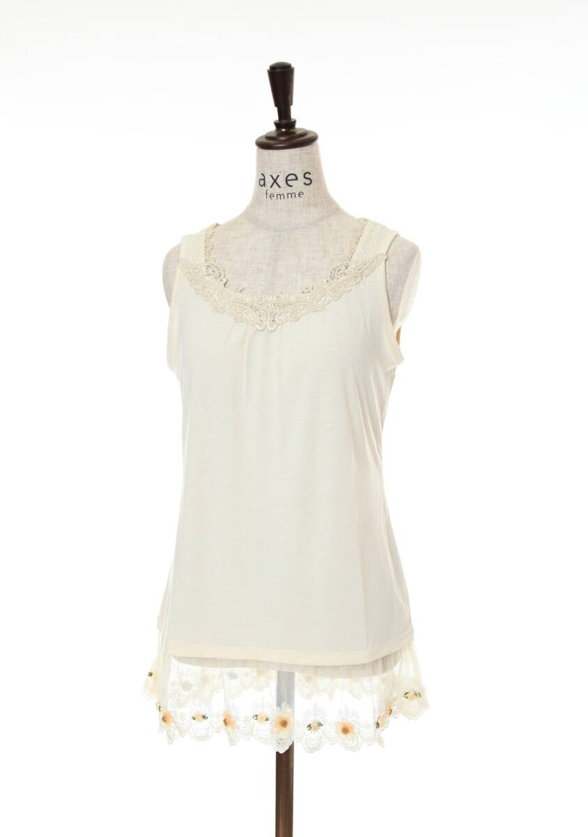 > 306◇立体お花付きロングタンク 生成り キナリ axes femme アクシーズ ファム TS1X261