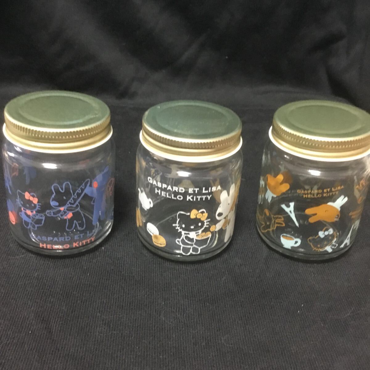 - ハローキティ×リサとガスパール ガラス製保存容器3個セット ガラス瓶小物入れサンリオLISAGASPARD