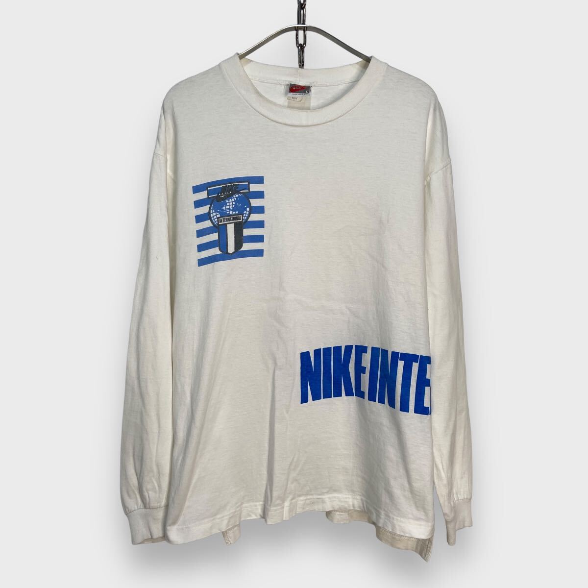 - 送料無料☆90s☆USA製☆NIKE☆マルチプリントロンT☆銀タグ☆ホワイト☆L☆変形☆