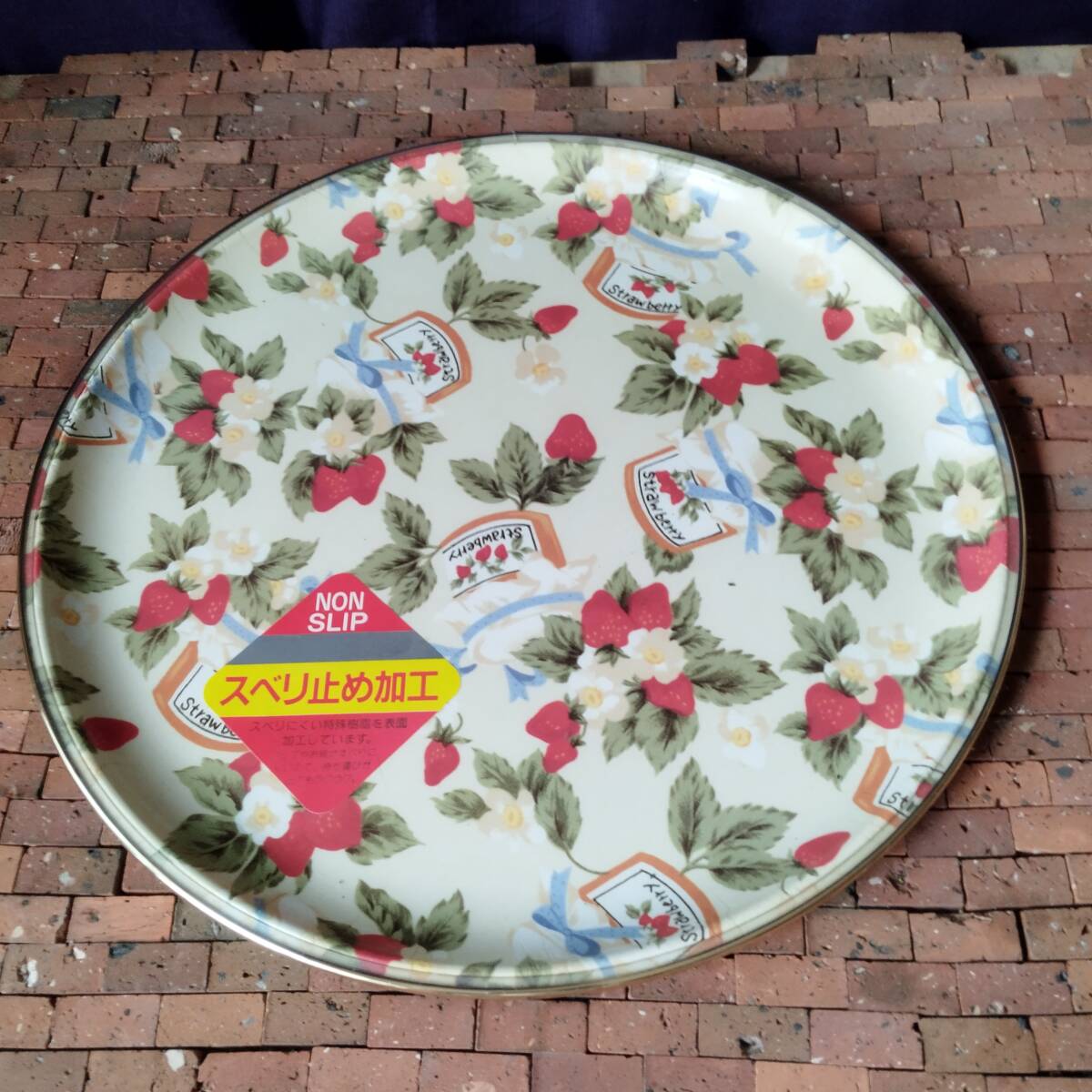 - 丸お盆 トレー トレイ 昭和レトロ 丸 お盆 トレー 丸盆 セットで 古道具 いちご イチゴ 苺