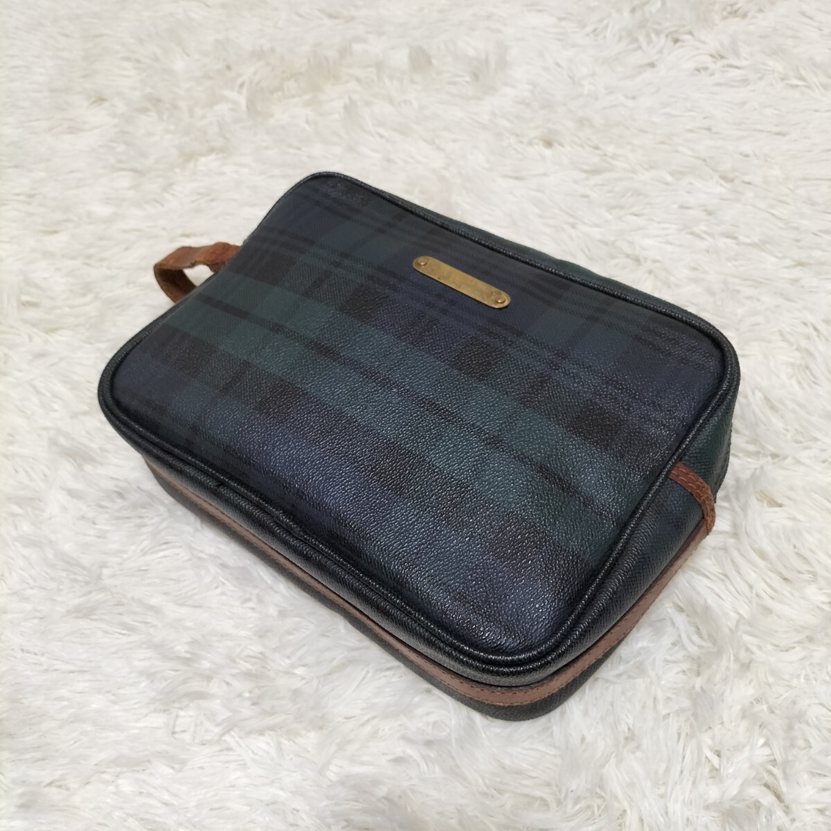 > ☆POLO Ralph Lauren ポロラルフローレン セカンドバッグ クラッチバッグ ブラックウォッチ チェック柄 PVCレザー マルチ ポーチ 小物 USED