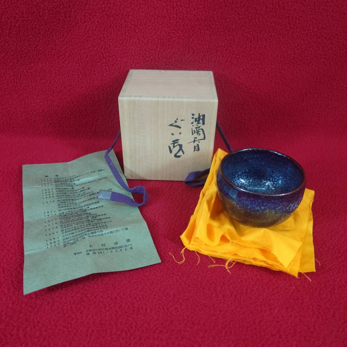 > 未使用品 美品 旧家蔵出 旧家 名家 うぶ品 木村盛康 油滴天目 ぐい呑 共箱 共布 在銘 印 サイン