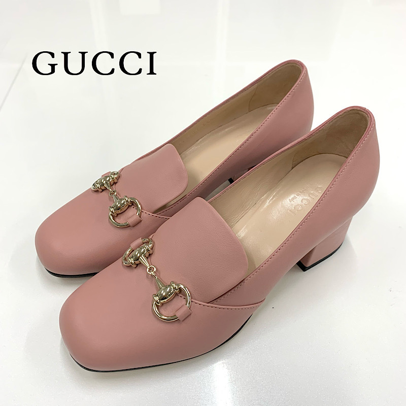 - M10061 グッチ レザー ホースビット パンプス ピンク