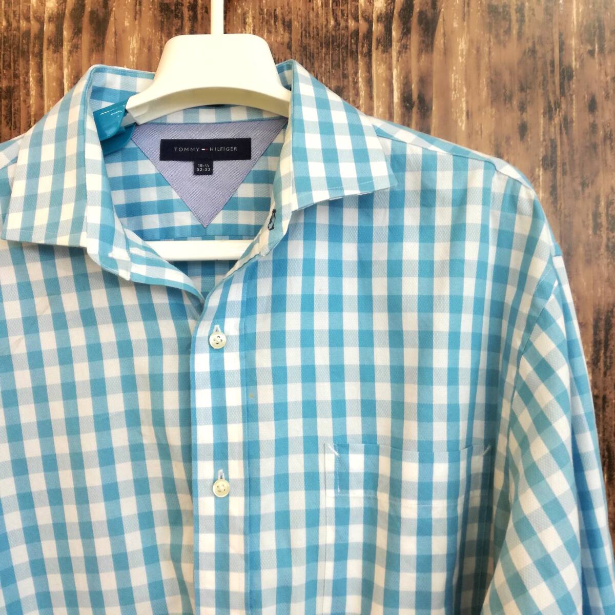 > 中古 アメリカ古着 TOMMY HILFIGER トミーヒルフィガー 長袖シャツ メンズ XLサイズ相当 水色 白 チェック柄 ビンテージ カジュアル