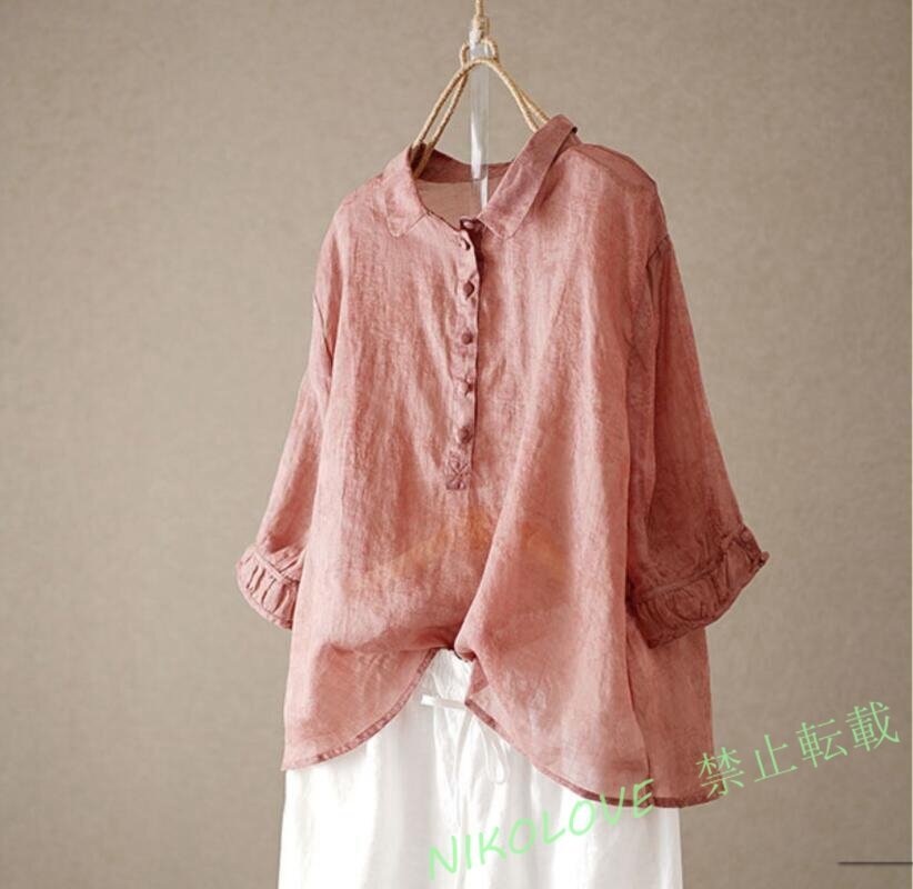 - 新品 夏カジュアル ブラウス シャツ レディース ブラウス プリント柄 半袖 可愛い トップス 大人 チュニック ピンクXL LG850