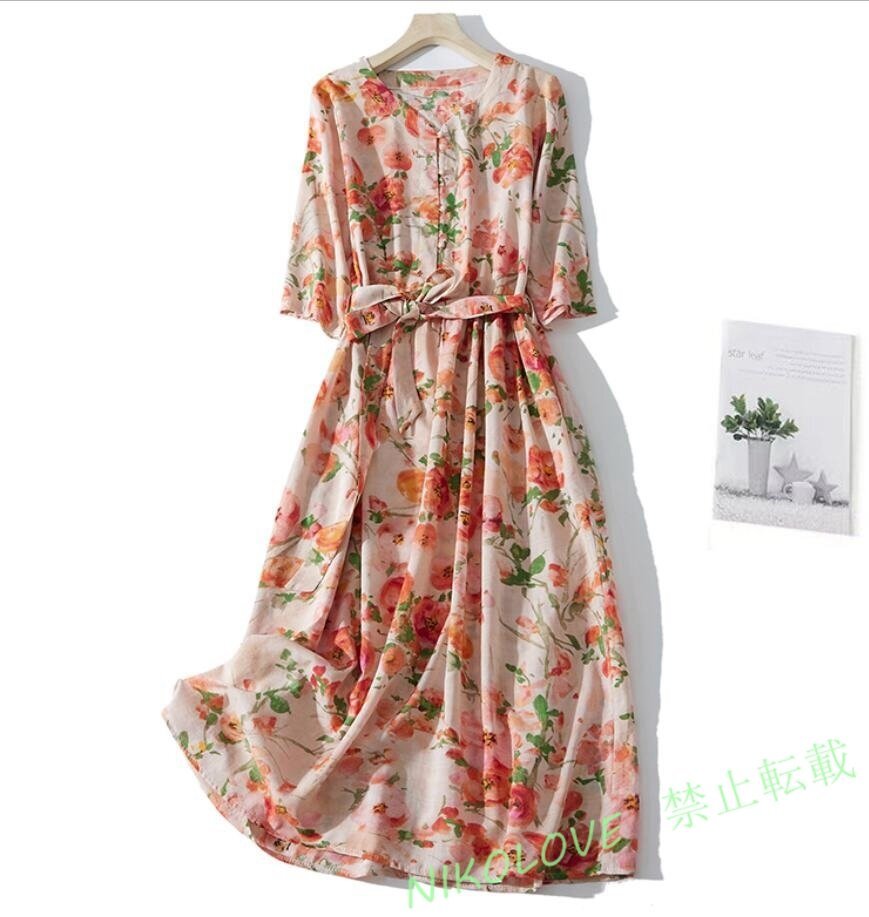 - 新品 夏 ロングワンピース ワンピース ゆったり 大きいサイズ 夏 半袖 きれいめ 総柄 着痩せ 上品 マキシワンピース2XL LG930
