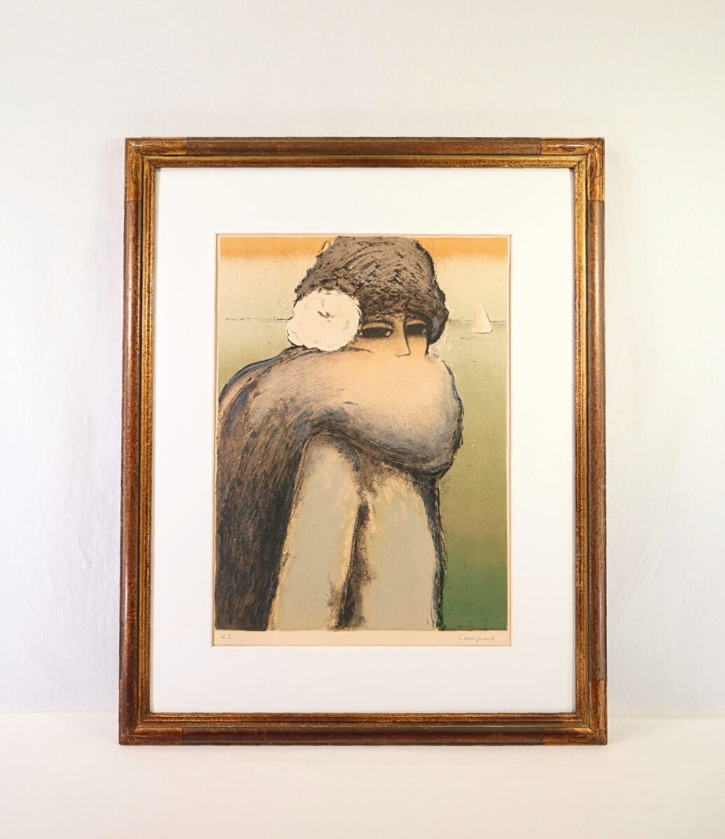 - 真作 ジャン=ピエール・カシニョール 大判リトグラフ「Le Ciel Rose」画寸 42cm×57cm 優美な色彩とエレガントな雰囲気 物憂げな表情 9304