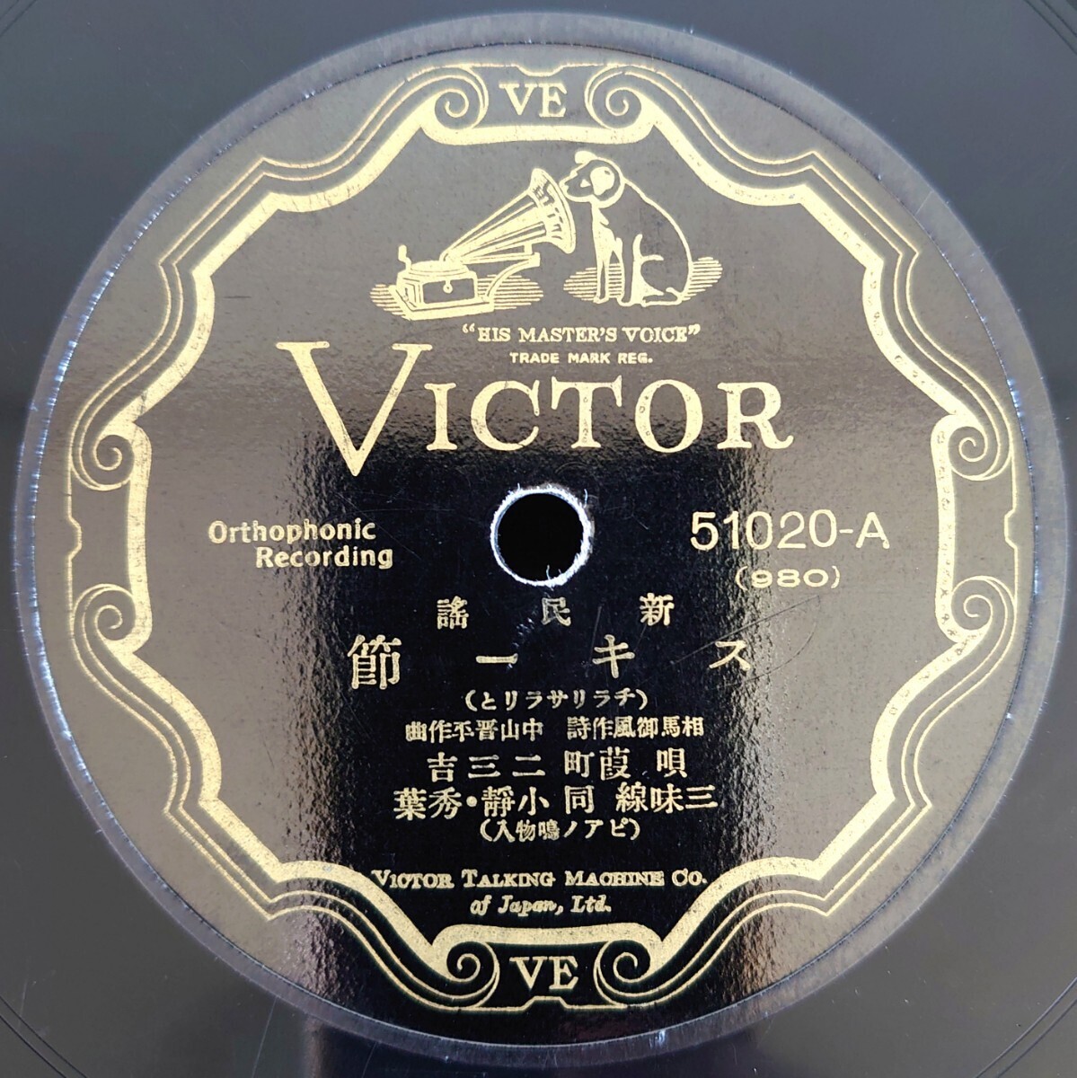 - 【蓄音機用SP盤レコード】VICTOR 新民謠/スキー節/ヤーソレ節/唄・葭町 二三吉 三味線・同 小靜・秀葉/SPレコード