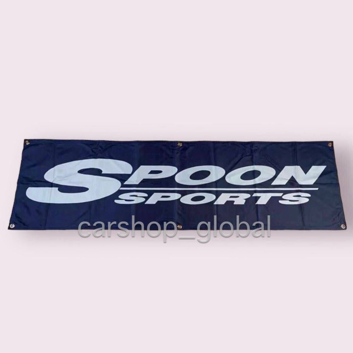 > スプーン SPOON SPORTS バナー フラッグ 旗 ガレージ 150×45cm 特大 バックル付 ホンダ/S660/NSX/シビック/タイプR/S2000/フィット/CRZ等