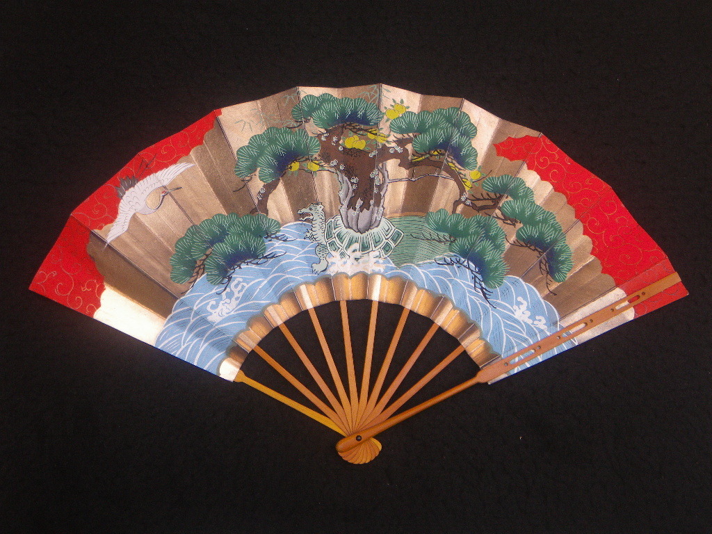 - 尺一 舞扇 333㎜ 赤雲 蓬莱山図 翁扇 能扇 仕舞扇 白骨