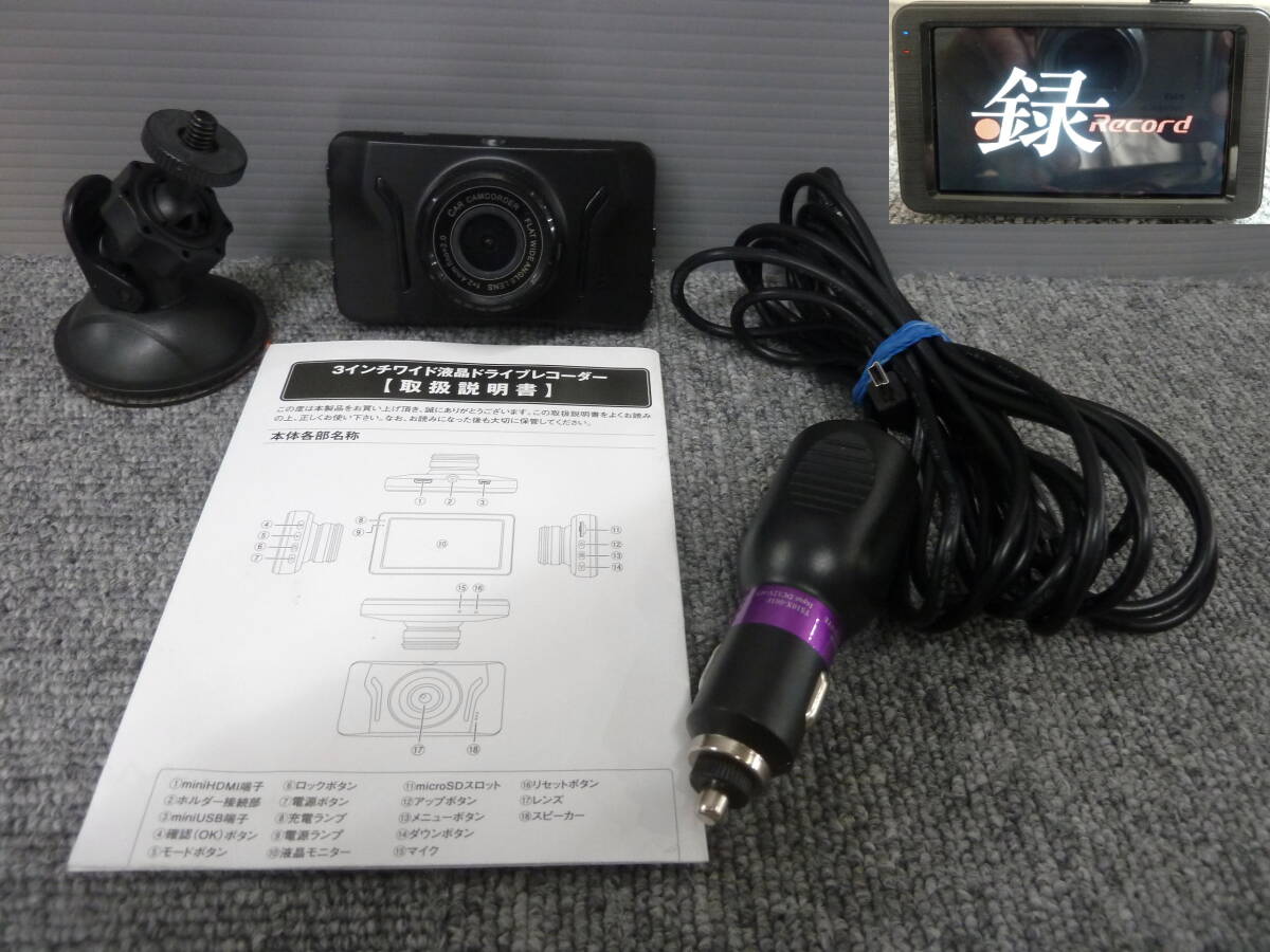 > ●●2406-55L MAXWIN 3.0インチワイド LCDカラー液晶 ドライブレコーダー ドラレコ 12V/24V両対応 DVR-D006 動作OK! microSDカード欠品