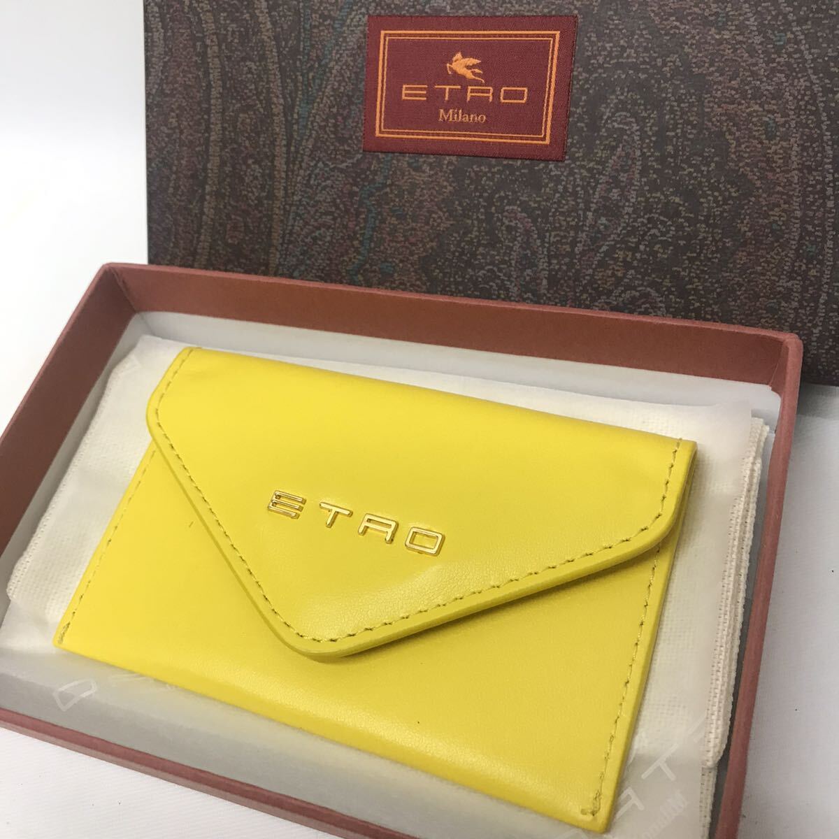 - 【未使用】エトロ カードケース レザー 革 ETRO ロゴ カード入れ カードホルダー 名刺入れ IC黄色 イエロー ゴールドカラー金具 男女兼用