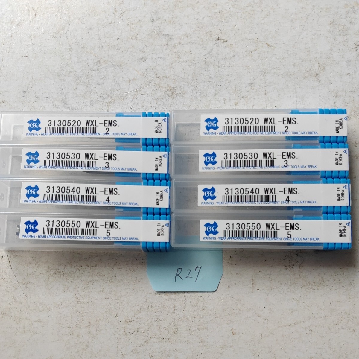 > R27 未使用 OSG 超硬エンドミル 4枚刃 コーティングエンドミル WXL-EMS Φ2 Φ3 Φ4 Φ5 各2本 8本セット