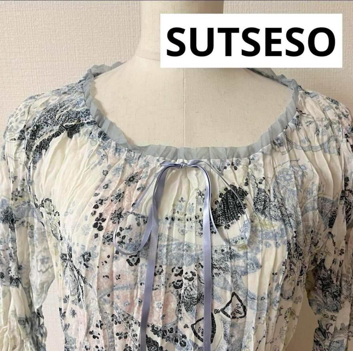 - 美品◇SUTSESO◇スチェッソ◇シワ加工 ペイズリー柄カットソー◇