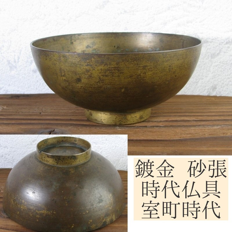 - 時代仏具 希少品 室町時代 鍍金 砂張 幅:14.5cm 重さ:270g 仏教美術/24g003