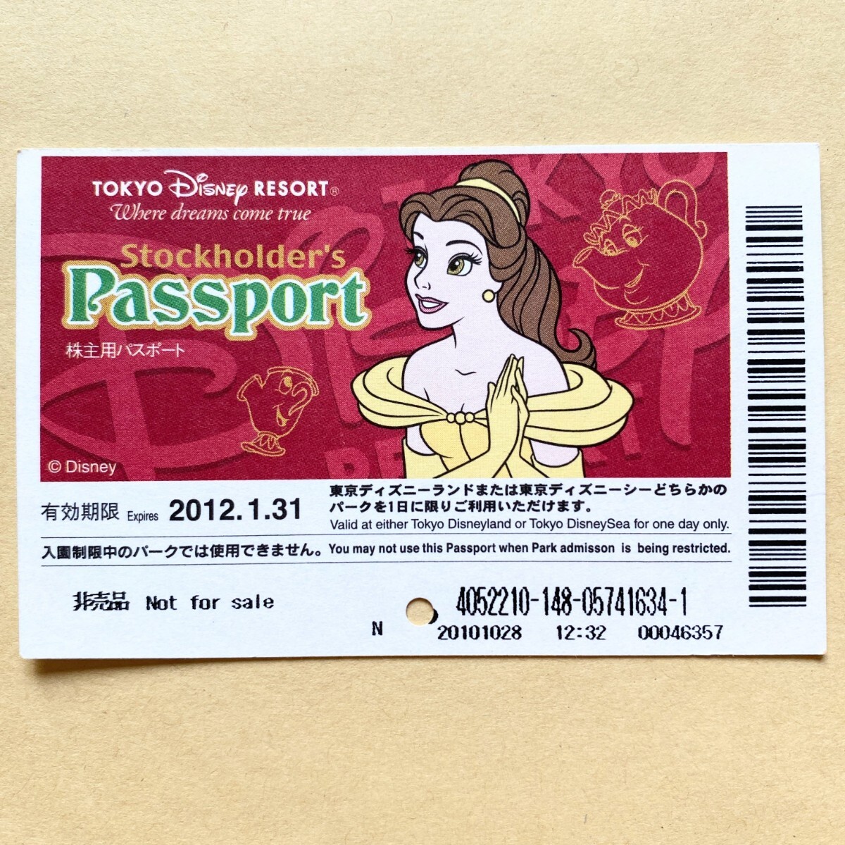 - 【使用済】 ディズニーパスポート 株主優待 ベル(美女と野獣)