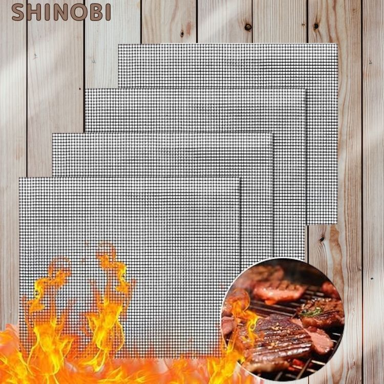 > グリルマット バーベキュー網 BBQ用グリルシート テフロングリルネット 調理シートグリル焼き網 両面利用 4枚セット(40×33cm)