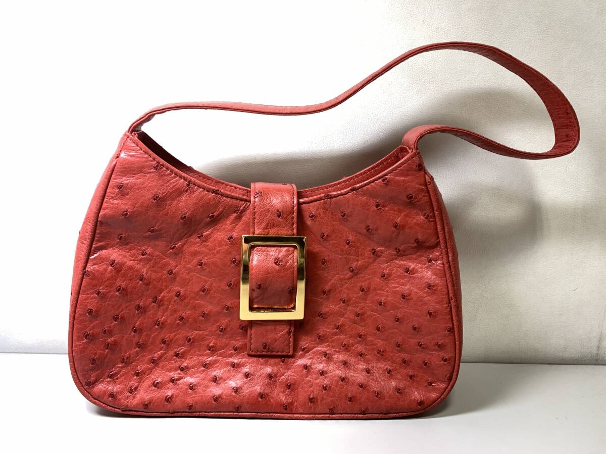 - 【質屋 尾張屋商店 東京】オーストリッチ ワンショルダーバッグ 赤