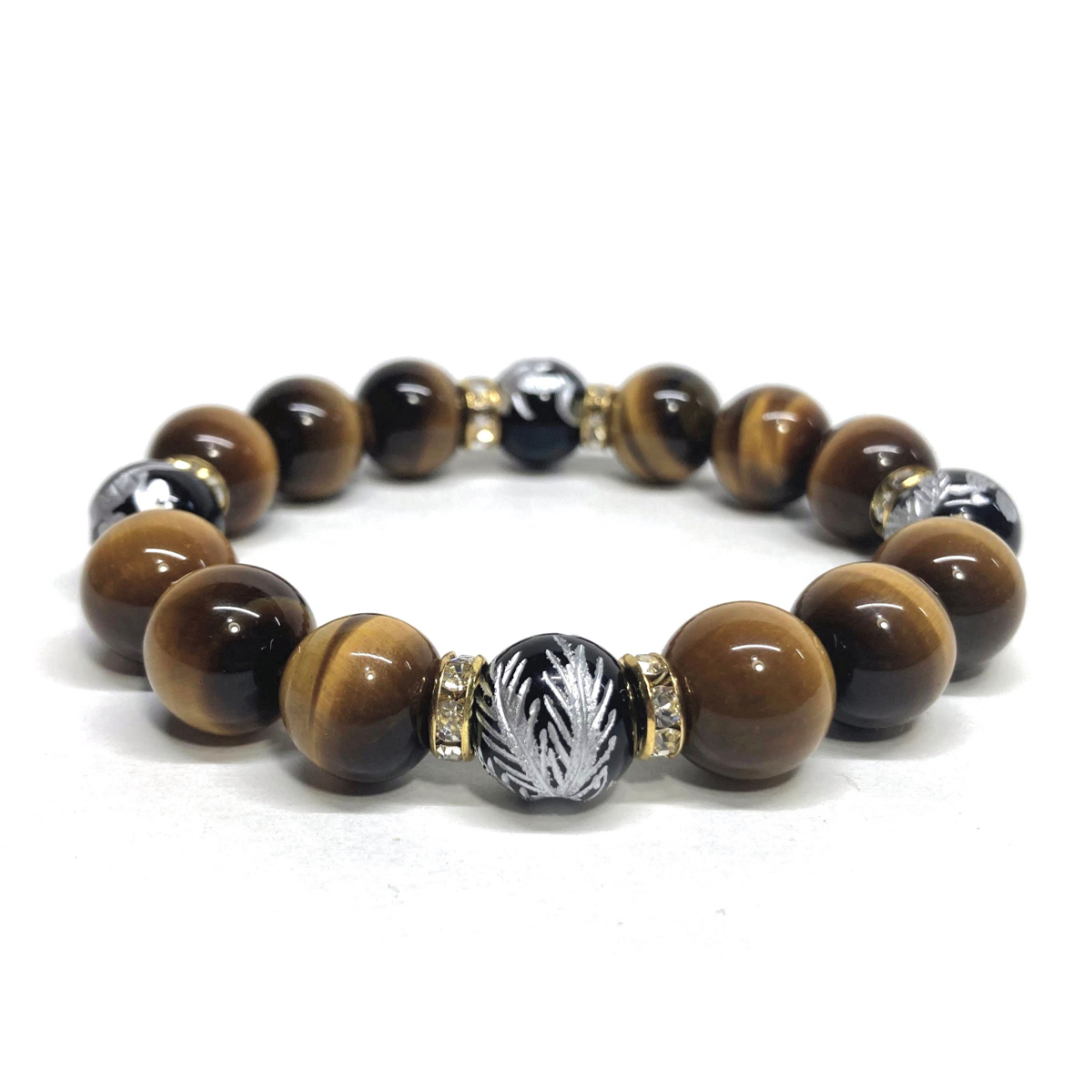 - 四神獣銀彫オニキス×タイガーアイ 12mm パワーストーン ブレスレット天然石 青龍 白虎 玄武 朱雀 運気上昇 開運 金運 お守り 四神相応 G