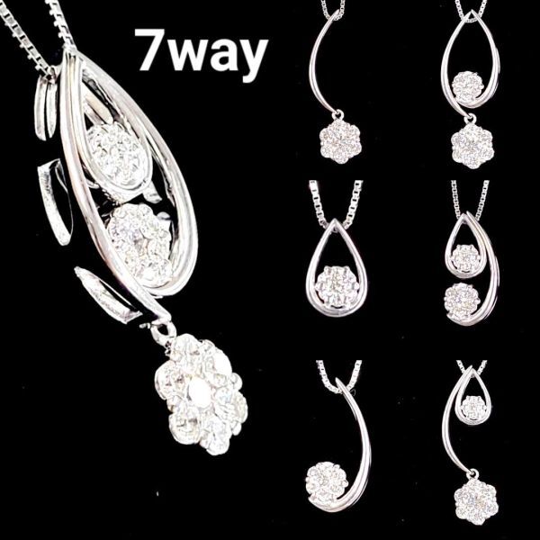 > 【製造大卸☆最安値】7way! 天然 ダイヤモンド 18金 K18 WG ホワイトゴールド ペンダント ネックレス 【鑑別書付】