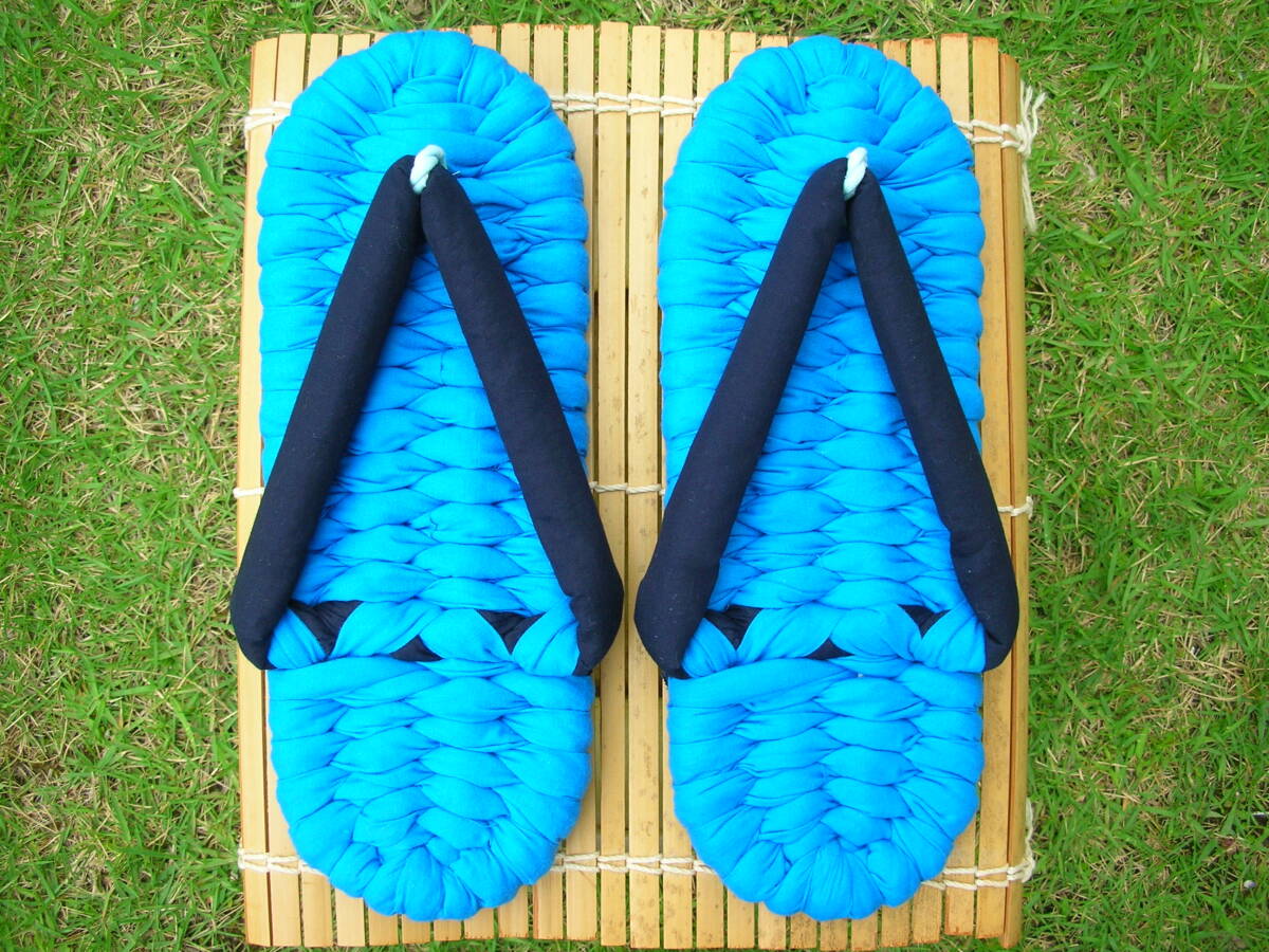 - ☆ステキな布ぞうり☆27.5cm☆No.58☆ 色は青!! 裏布付き!