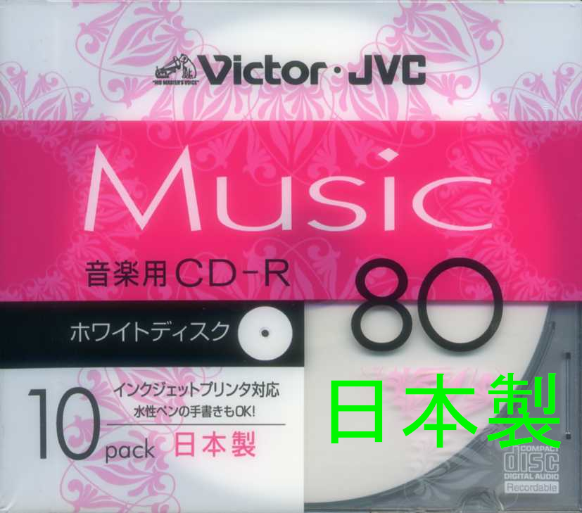 - 日本製 Victor JVC MUSIC 80 10 DISC インクジェットプリンタ対応 音楽用CD-R CD-A80PR10 未開封