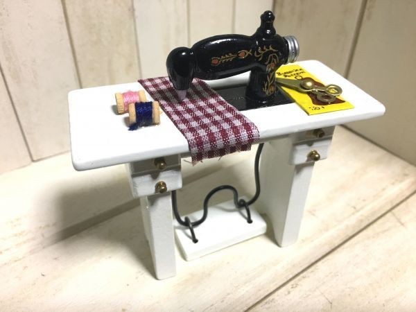 - y728◆カントリー調白ミシン◆ ドールハウス 用 ミニチュア アンティーク調 ミシン レトロ Doll House Blythe ブライス シルバニア フード