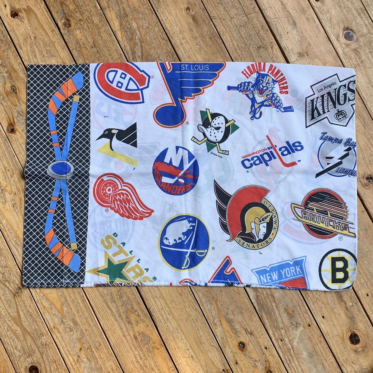 - USA ヴィンテージ アイスホッケー NHL ピローケース 枕カバー リメイク生地 ナショナルホッケー 袋状両面プリント アメリカ仕入 B2352
