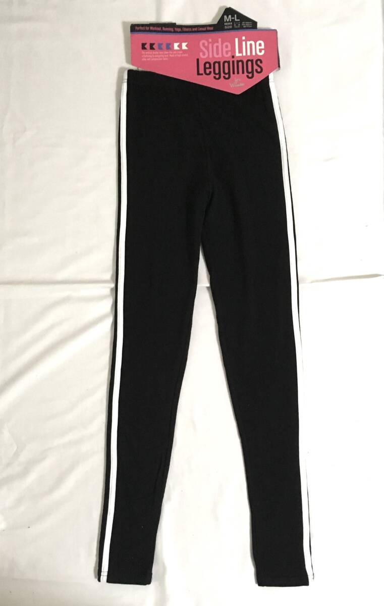 - ■送料無料 新品 M-L ブラック ホワイト サイド ストライプ レギンス ウエスト ゴム 運動着 部屋着 40