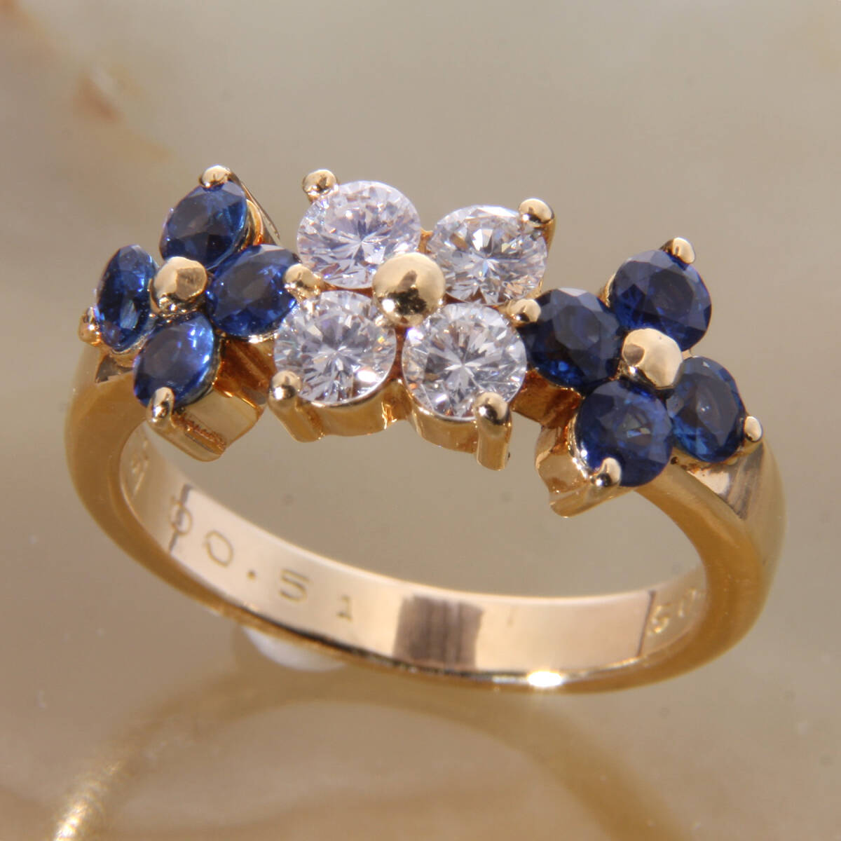 - ke9920◆K18リング サファイア/ダイヤモンド お花 8.5号