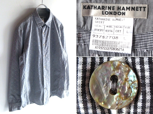 > 希少 ビンテージ KATHARINE HAMNETT LONDON キャサリンハムネット ロンドン ジャガード コットン ギンガムチェック シャツ L ネコポス対応