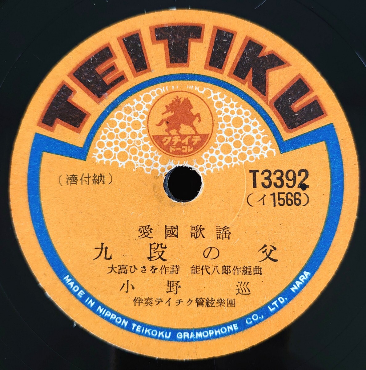 - 【蓄音機用SP盤レコード】TEITIKU 愛國歌謠/九段の父 /宛なき手紙/小野巡/SPレコード美盤