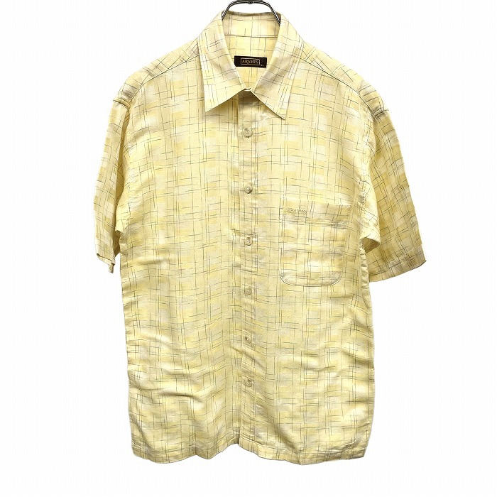 > アラミス ARAMIS シャツ チェック風 ポケット 半袖 ボックスカット 日本製 綿×麻 コットン×リネン S イエロー 黄×緑×ピンク×青 メンズ