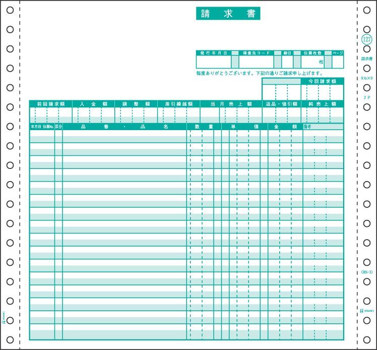 - ヒサゴ ドットプリンタ帳票 請求書 2枚複写 200セット入 GB127