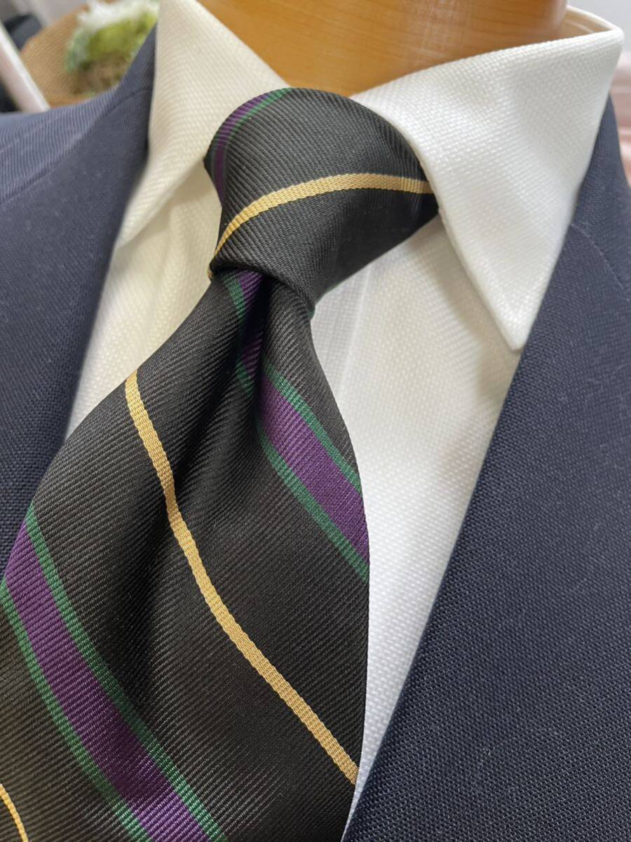 - 【未使用】ラルフローレンレジメンタル柄 ブラック基調大剣約10cmネクタイ 田中栄光堂 高級シルクヴィンテージ