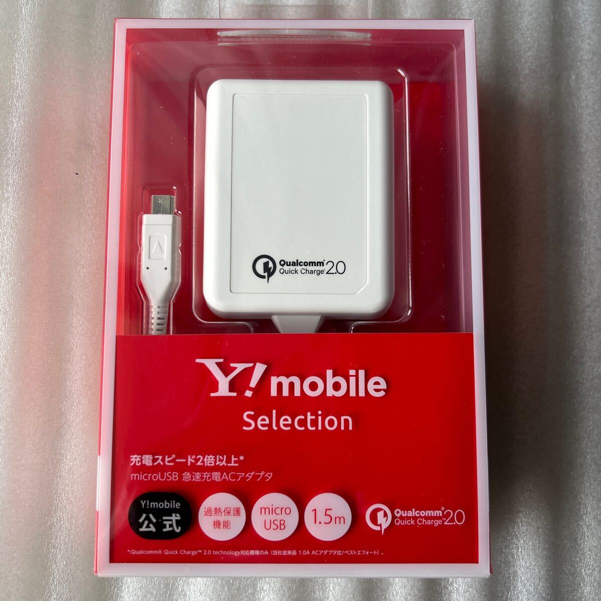 > 新品 ワイモバイル ymobile 急速充電器 microUSB 充電スピード2倍 Y1-AC12-HDQC ACアダプター マイクロUSB Android ソフトバンク スマホ
