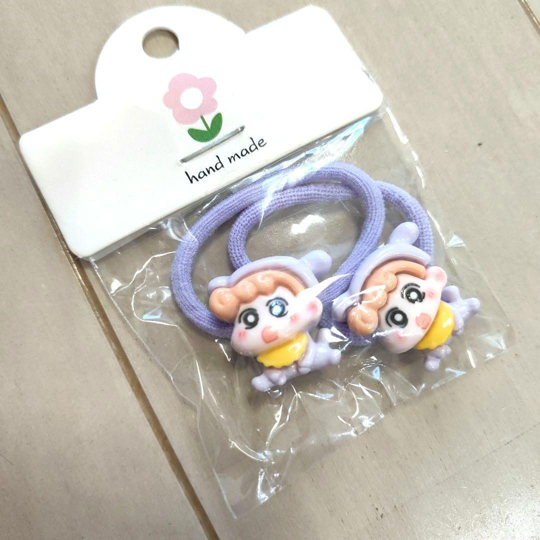 - ベビーマスコット付ヘアゴム2個セット 黄色いスタイの赤ちゃん ラベンダーパープル